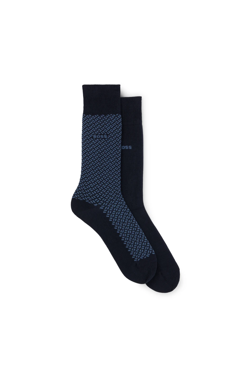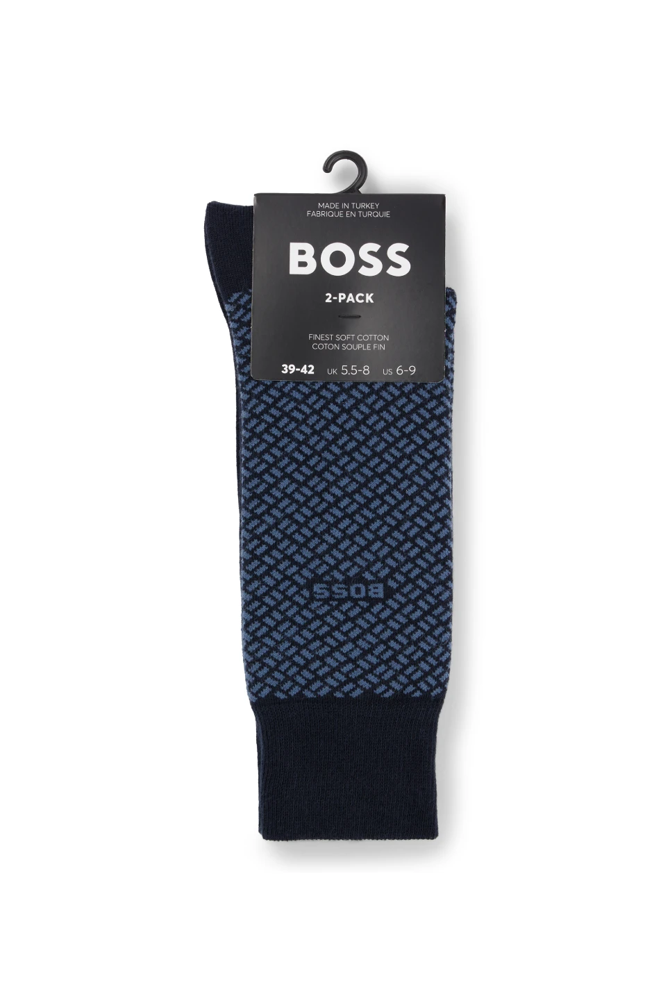 Step into comfort and style with the Boss Men’s Patterned Dress Socks. These navy socks come in a pair that stands out with a subtle yet sophisticated pattern, perfect for adding a touch of interest to your professional attire. They are woven from a blend of 59% cotton for softness, 40% polyamide for durability, and 1% elastane for just the right amount of stretch. These socks provide the perfect fit and all-day comfort for the discerning gentleman.