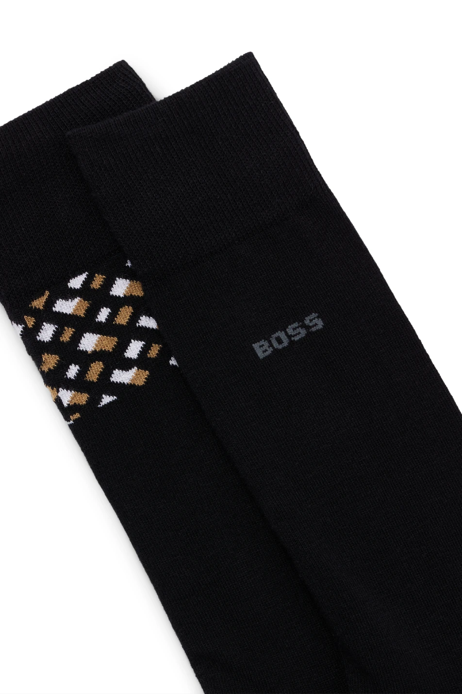 Elevate your sock collection with these luxurious socks, featuring a Boss all over logo print at the cuff for a distinctive touch of brand identity. These socks are finely crafted from a blend of 80% cotton, 18% polyamide, and 2% elastane, delivering both exceptional comfort and a snug fit. The breathable cotton fabric keeps your feet comfortable throughout the day, while the added elastane ensures they maintain their shape, providing a sleek look under any shoe.