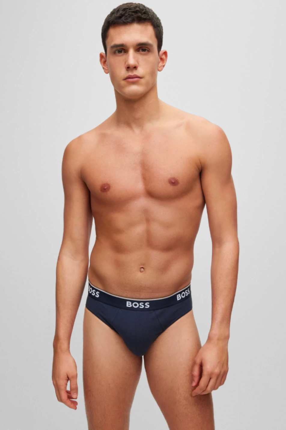 3 pack of contemporary briefs by BOSS, featuring a branded BOSS waistband with a modern sporty stripe. Crafted from stretch cotton, to ensure all-day comfort. Look good and feel great in these pants.