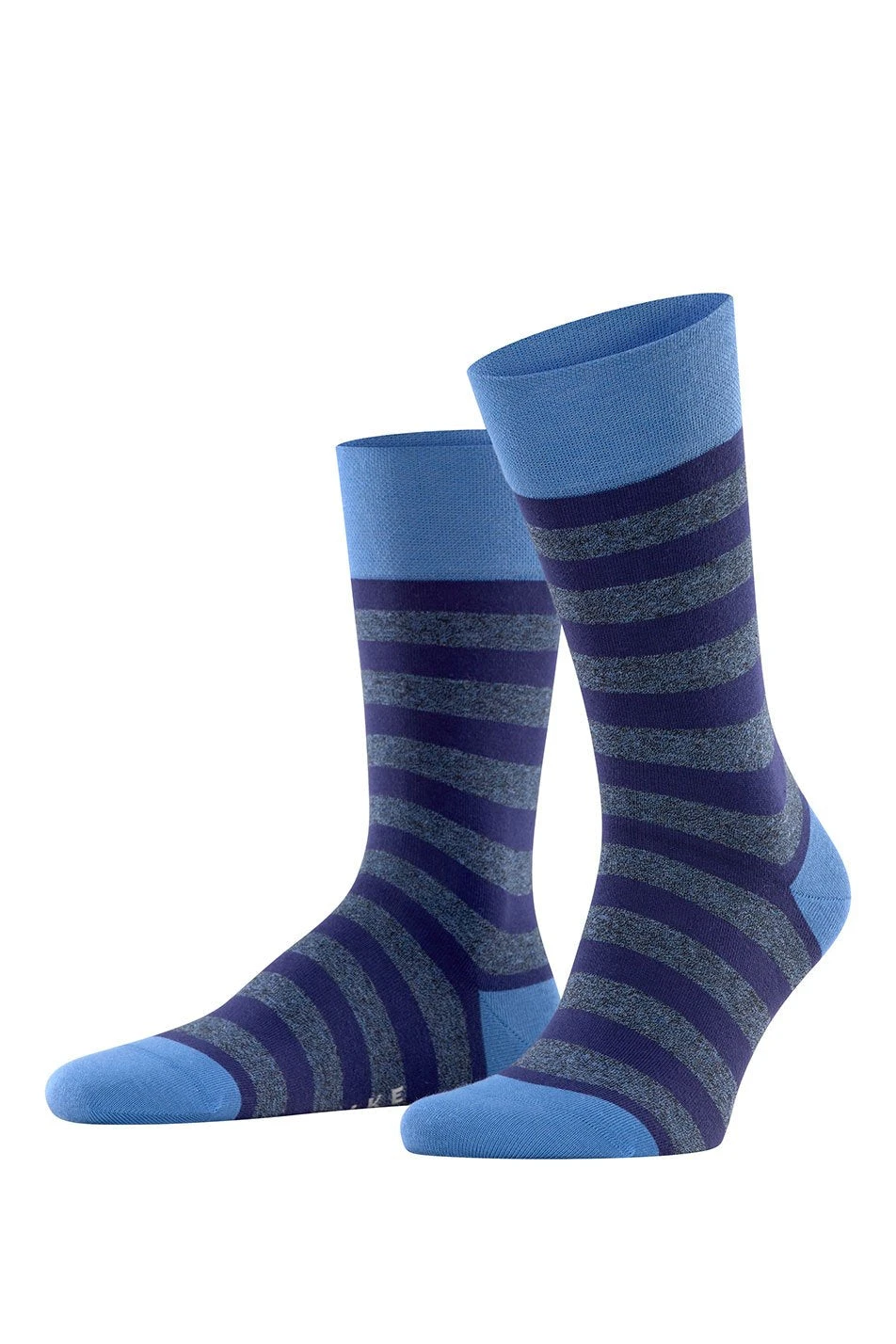FALKE Sensitive Mapped Socks. These modern socks are characterised by a comfortable fit thanks to a soft, skin-friendly cotton blend. The pressure-free, sensitive cuffs and the perfect fit contribute towards the extra comfort of these socks, while the reinforced stress zones ensure optimum durability. The Mapped Line Socks take on a timeless, two-tone ring design and give it a modern touch thanks to the special mouliné look.