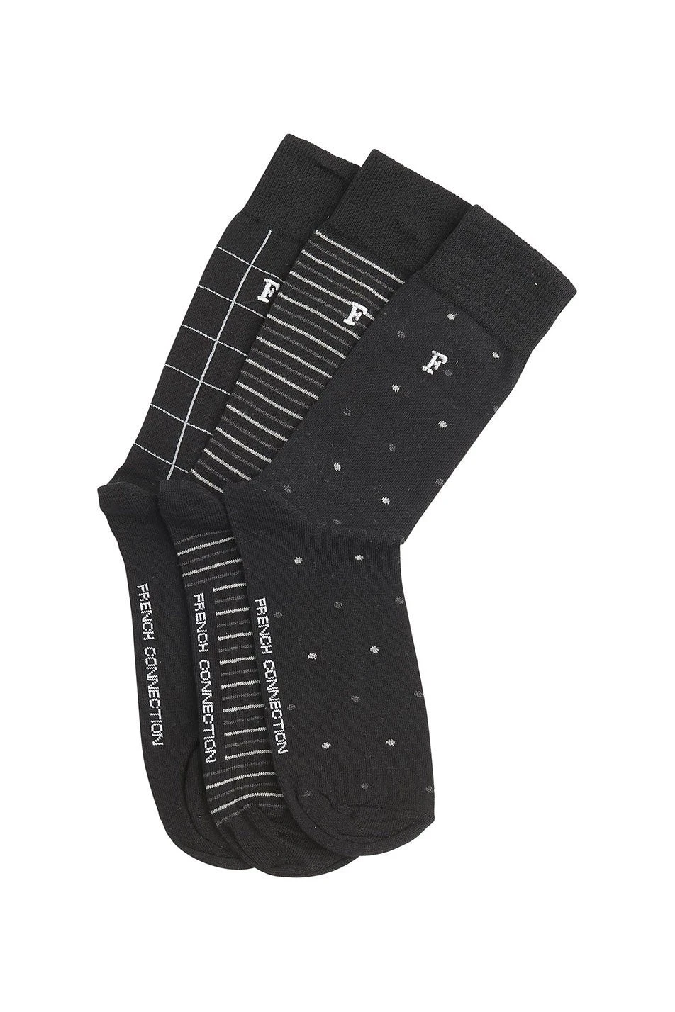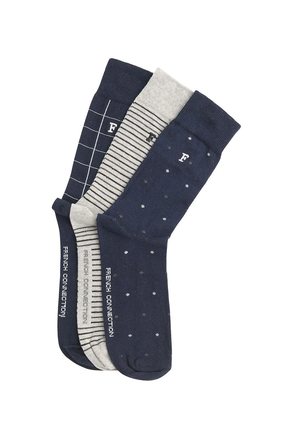 French Connection 3 Pack Waterfall Socks One Size. Crafted in a super soft cotton blend, featuring the added benefit of hand-linked toes, making these socks perfect for everyday wear. This trouser sock design has subtle French Connection branding. Making these socks a must-have for your socks drawer.
