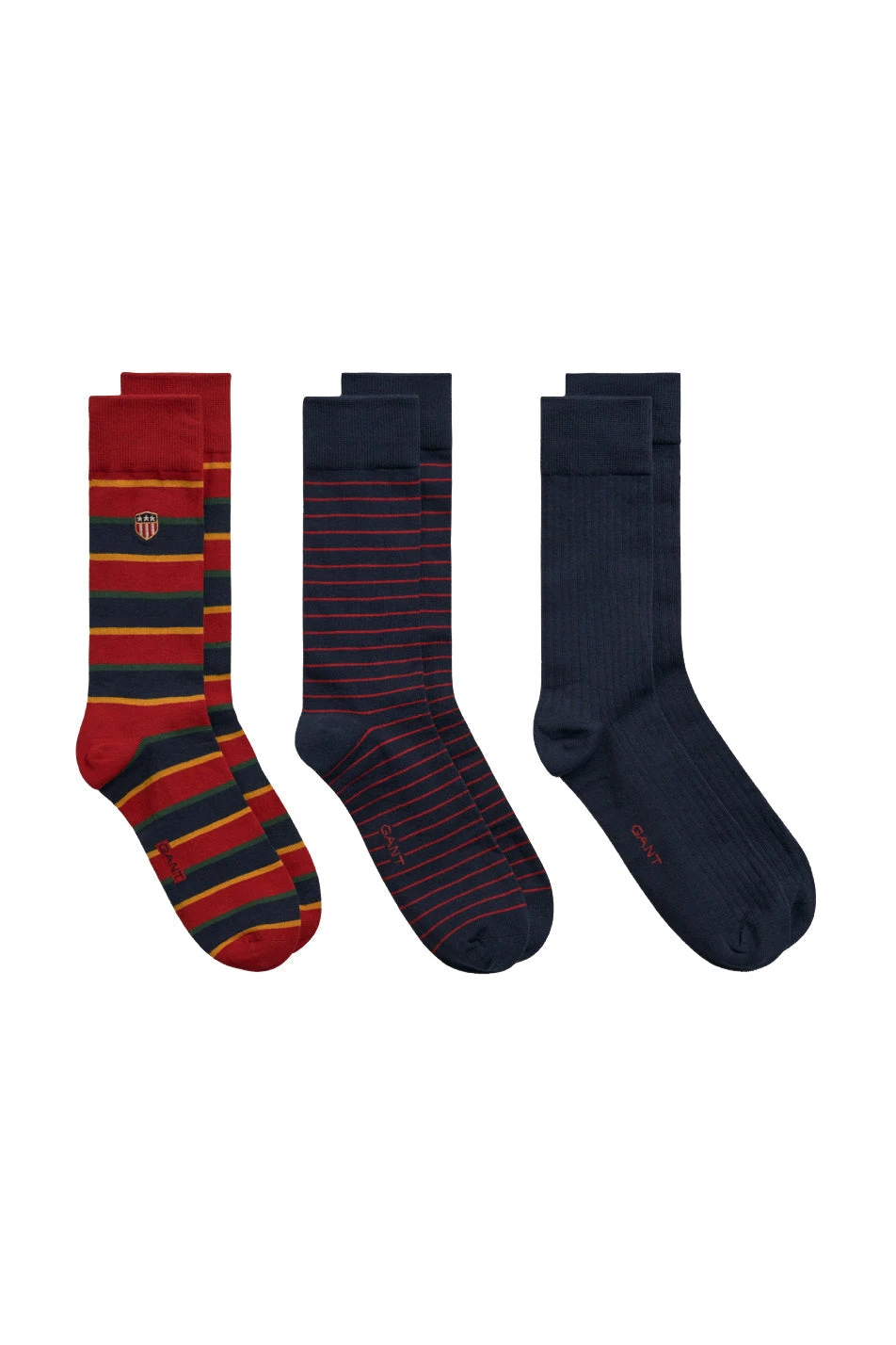 Gant 3 Pack Men’s Socks Gift Box. The perfect everyday socks, designed in classic solid and stripe colours to fit seamlessly into a preppy wardrobe. Made from a super soft cotton blend, they feature a double welt hem and shield detail above the ankle.