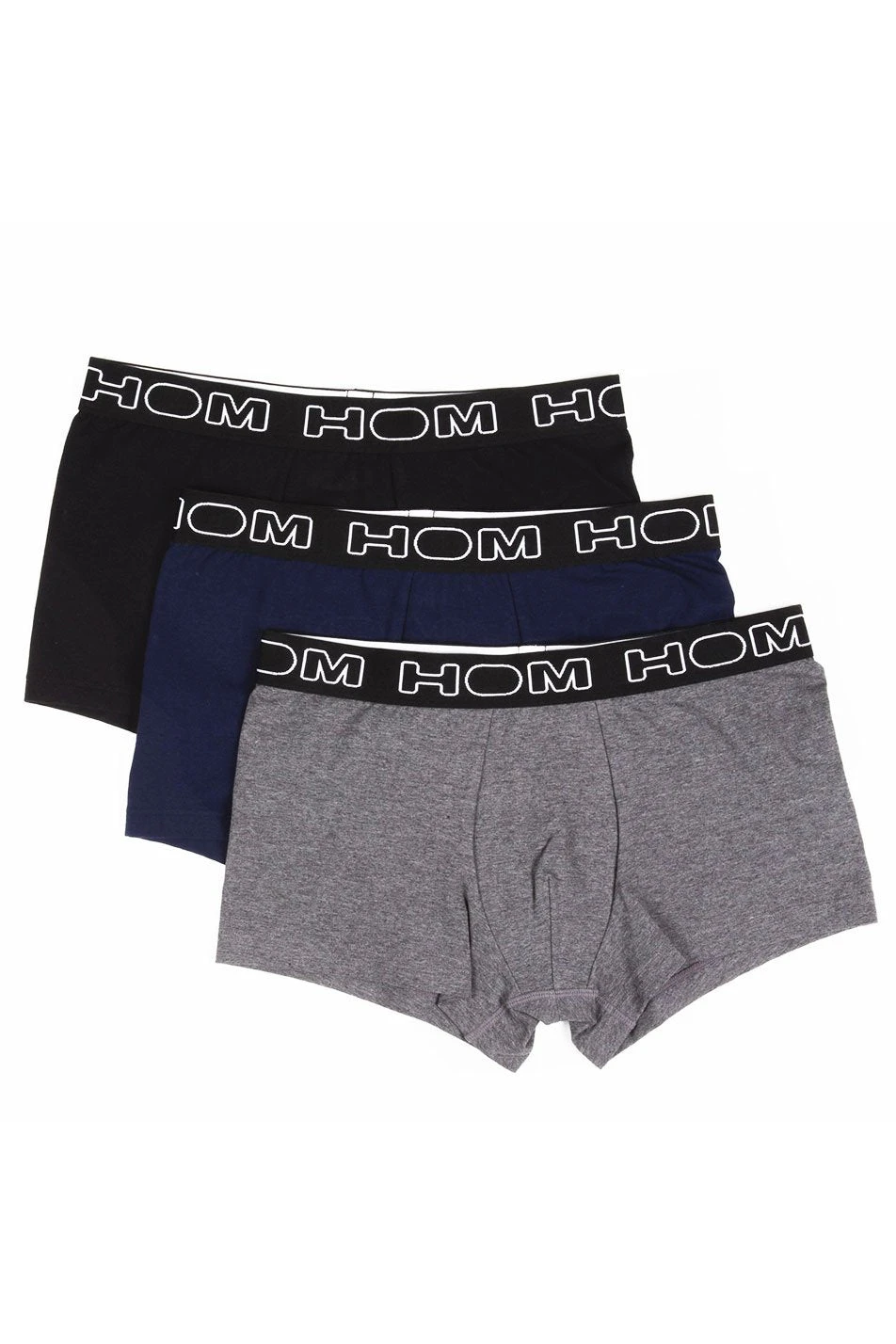 The HOM BOXERLINES boxers are plain-coloured boxer packs in stretch cotton which are available in packs of three. It’s an economy pack of basic boxers in timeless colours for daily wear. The waistband in microfiber of the packs of 3 BOXERLINES boxers is ultra-soft to the touch, pleasant to wear on the skin and doesn’t squeeze. They bear the HOM logo in contrasting colours. These stretch cotton boxers also feature a veil in the hem at the bottom of the leg for better maintenance on the thighs and a perfect hold.