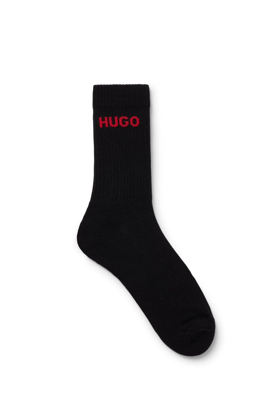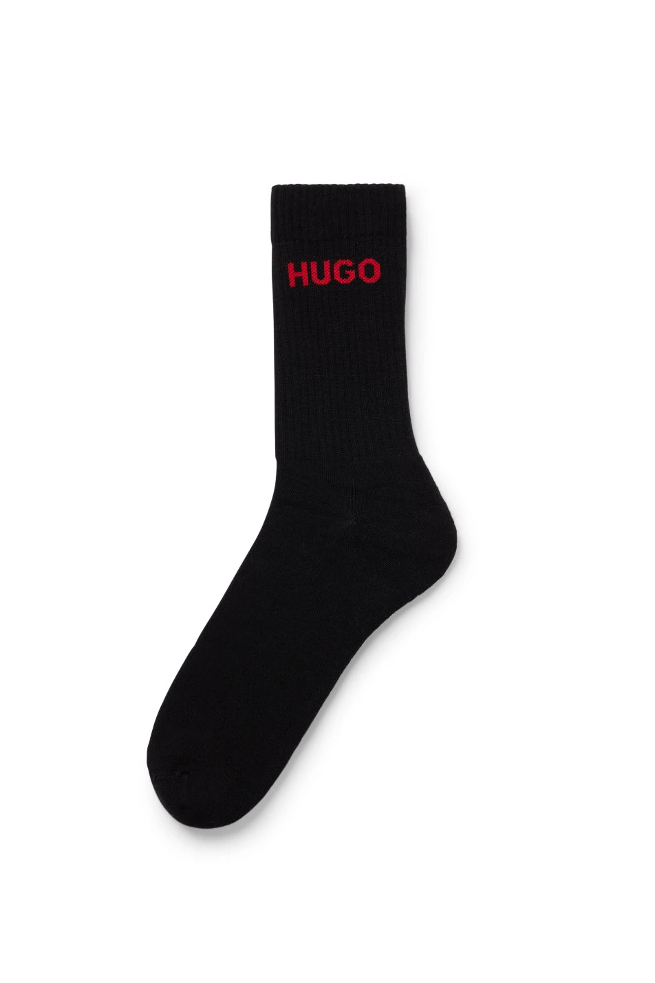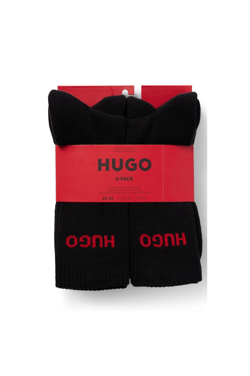 HUGO 6 Pack Men’s Rib Logo Sock. Six pairs of contemporary ribbed socks from HUGO, crafted from a soft cotton blend and complete with the iconic HUGO logo above the ankle. Perfect for every day of the week!